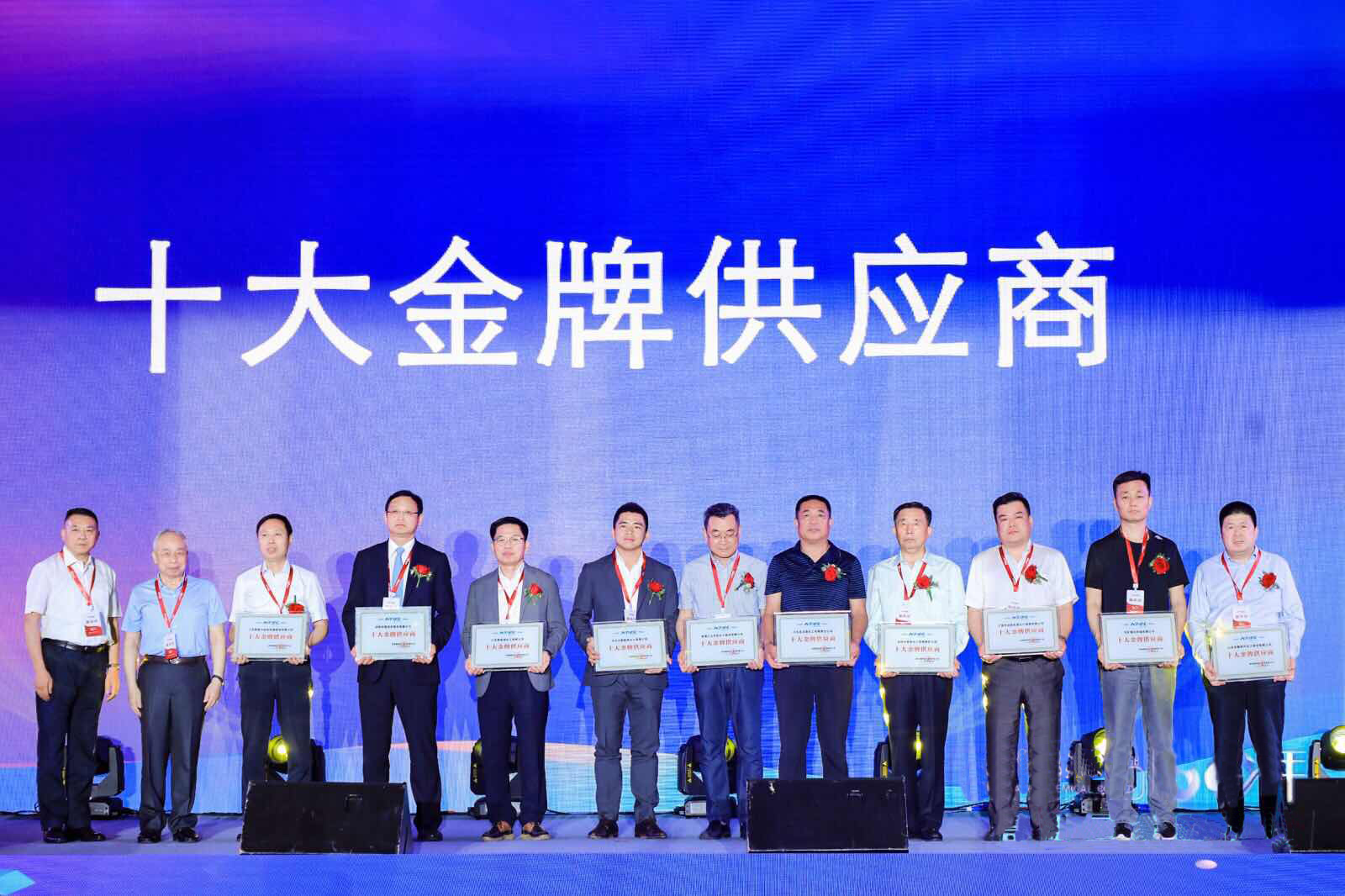 董事(shì)長顧根生先生出席會議並上台領取榮譽證書,我公司被醋化集團授予“十(shí)大金牌供應商“的稱號。
