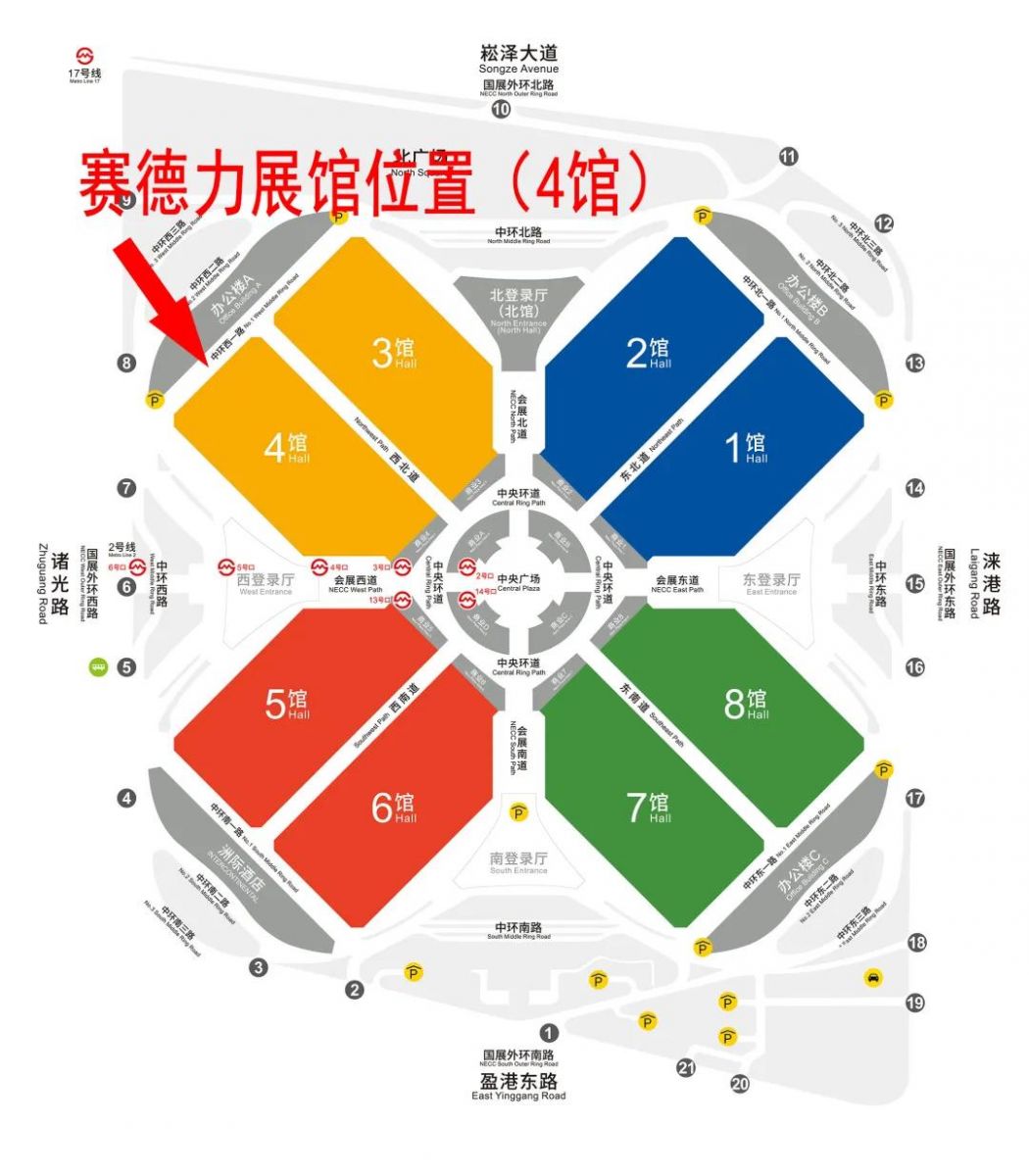 北(běi)翟高架、北部外環高速方向,嘉閔高架-崧澤高架-蟠龍路下匝道右轉(zhuǎn)-北停車場(崧澤大道北側蟠東路西側)-龍聯路-諸光路-崧澤大道(國(guó)家會展中心北門)-北停車場