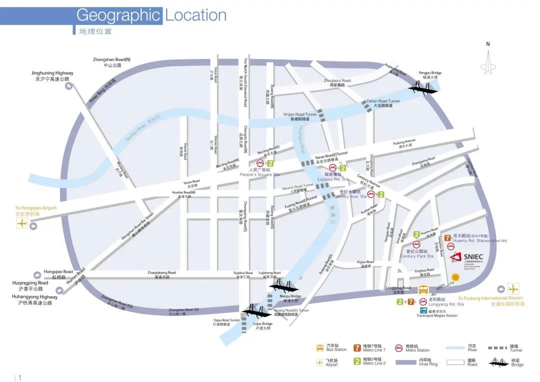 展館位於浦東兩條環線的交叉點,行車從市中心橫跨南浦大橋直達。