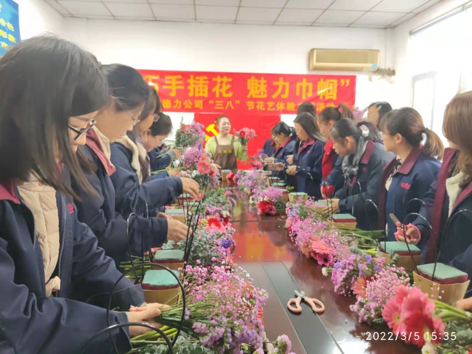春意(yì)盎然,我們踏著(zhe)春的氣息歡聚一堂,慶祝(zhù)即將到來的“三(sān)八”婦女節。為了豐富賽德(dé)力女職工的閑暇生活,陶冶大家的情操,公司黨支部和工會共同舉辦了(le)本(běn)次“巧手插花,魅力巾幗”花藝體驗主題活動(dòng),活動邀請了專業(yè)花藝師(shī)進行插花培訓,30名女職工(gōng)參加了本次活動。