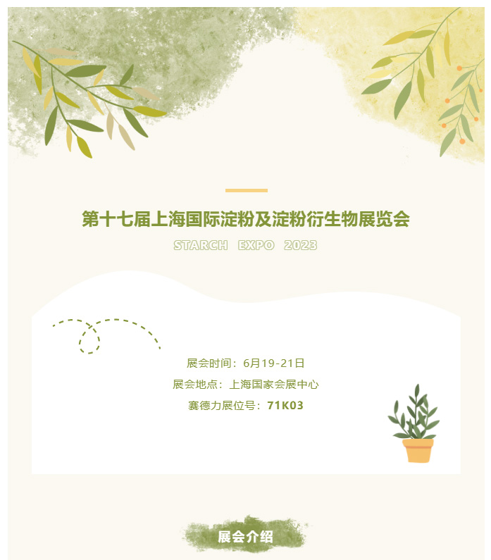 賽(sài)德力邀您共聚第(dì)十七屆上海國際澱粉及澱粉衍生物(wù)展覽會!