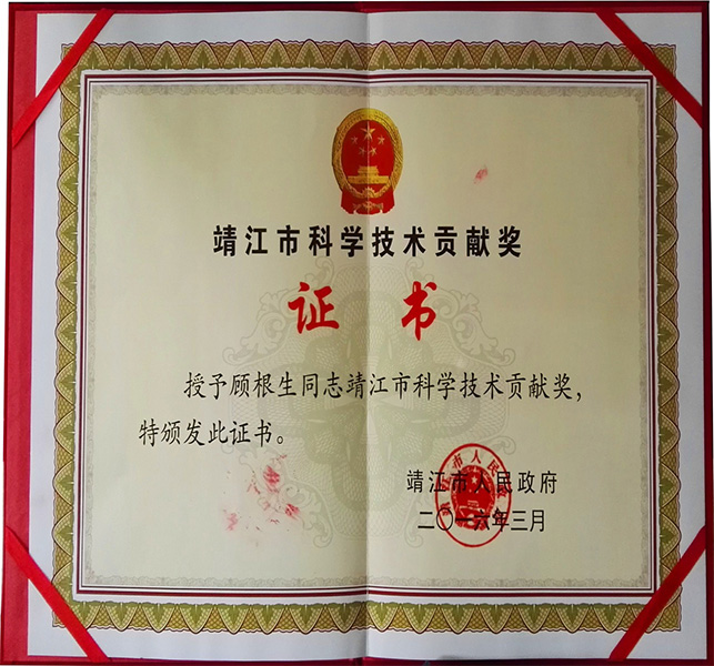 President Gu win Science and Technology Contribution Award of Jingjiang City.
